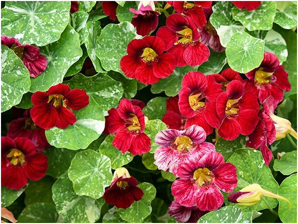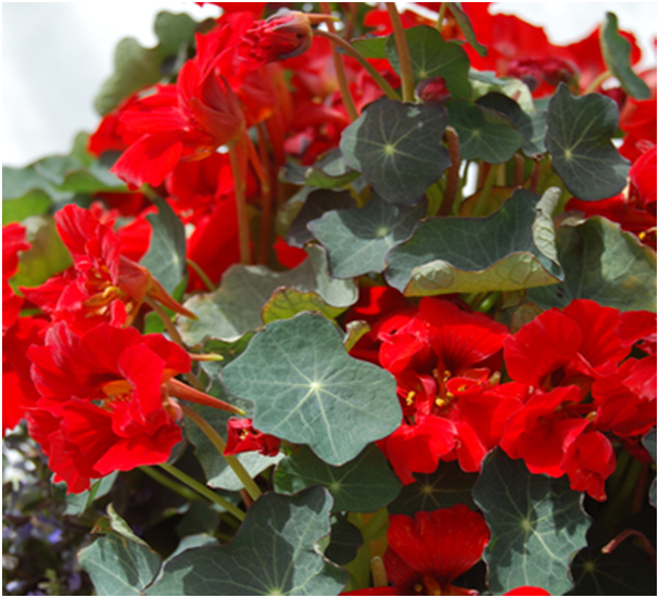 Vì gần đất xa trời, cảm thấy không khỏe, nên năm vừa rồi mình không nhổ “bulb” (củ) để trồng lại nên năm nay hoa không được nhiều như những năm trước, tuy vậy mỗi lần ra vườn mình vẫn cảm nhận được mùi thơm nồng ấm của hương hoa. Có một loại hoa mình không nhớ tên, rất dễ trồng, chỉ cần cắt một cành cắm xuống đất là sẽ có thêm cây khác vài tuần sau, cây cao đến 2 thước + cành hướng đủ chiều + hoa màu đỏ nên mình trồng dưới cửa sổ phòng ngủ, và lạ quá hình như lúc nào cây cũng có nhiều hoa. Mình tìm trong sách hướng dẫn trồng hoa thấy có tên là “Nasturtium Jewel” hoa nở vào mùa xuân, nhưng bây giờ còn mùa đông vẫn có hoa màu đỏ thật đẹp.